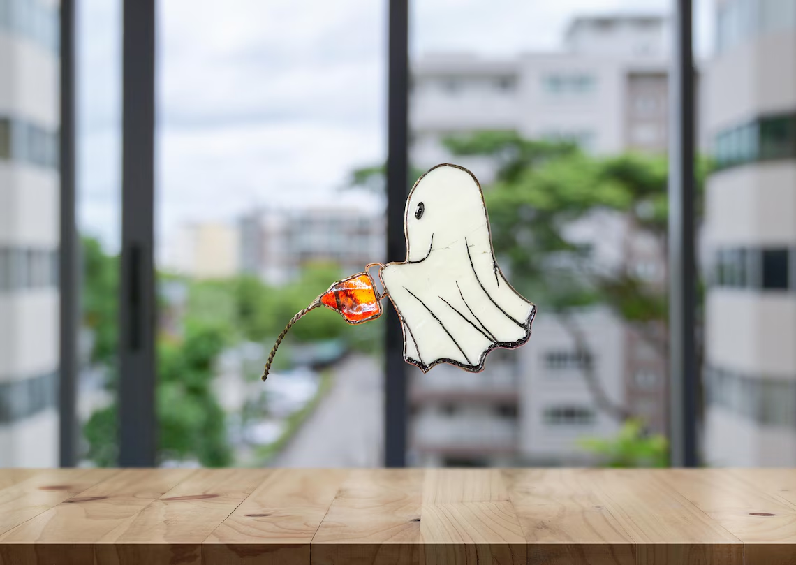 TECHNIQUE Crafted with precision and love, this piece uses high-quality materials and intricate wirework to bring the ghost to life. The transparent allows light to dance through, creating a captivating play of colors and shadows.